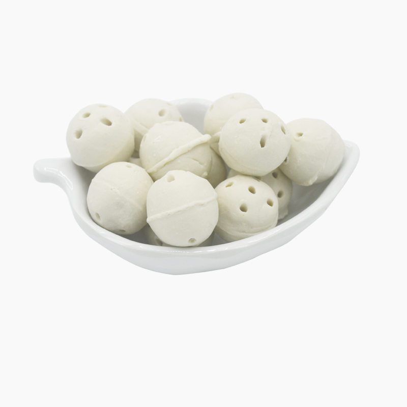 開孔瓷球是在惰性瓷球基礎(chǔ)上開發(fā)的新產(chǎn)品,它以球體直徑軸心進(jìn)行開孔,既具有如惰性瓷球那樣一定的機(jī)械強(qiáng)度、化學(xué)穩(wěn)定性和熱穩(wěn)定性,又增加了比表面積和空隙率,從而增加了物料的分散性和通量,降低了系統(tǒng)的阻力。開孔瓷球自投放市場以來,廣泛應(yīng)用于石油、化工和天然氣行業(yè)替代惰性瓷球作催化劑的覆蓋支撐填料。