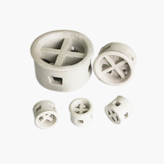 陶瓷階梯環(huán)吸收了短拉西環(huán)的特點,也改變了填料的環(huán)高與直徑相等的習慣,降低了環(huán)的高度,減薄了材質(zhì)的厚度,并在環(huán)的側(cè)端增加了翻邊。