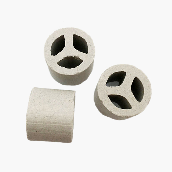 陶瓷三丫環(huán)填料是一種經(jīng)外觀獨(dú)特設(shè)計(jì)加工成的一種新型高效散堆填料,產(chǎn)品高徑比約為2:1,內(nèi)部設(shè)有一個(gè)或三個(gè)“Y”型隔板,這樣增大比表面積,提高了汽液分散性能,使汽液接觸更充分。三丫環(huán)填料是從階梯環(huán)、共鉅環(huán)、扁環(huán)、矩鞍環(huán)的基礎(chǔ)上以及在形狀、外觀和結(jié)構(gòu)綜合考慮,進(jìn)行取長(zhǎng)補(bǔ)短而改進(jìn)的。