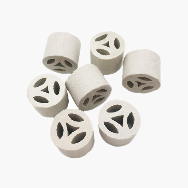陶瓷扁環(huán)是在塑料扁環(huán)和金屬扁環(huán)之后開(kāi)發(fā)出的一種空隙均勻、傳質(zhì)效率高的一種新型陶瓷填料。產(chǎn)品結(jié)構(gòu)合理,比表面積大、接觸面積多、通氣量高、氣液分布均勻、阻力小、壓降低、強(qiáng)度高、氣液傳質(zhì)性能比一般填料好。