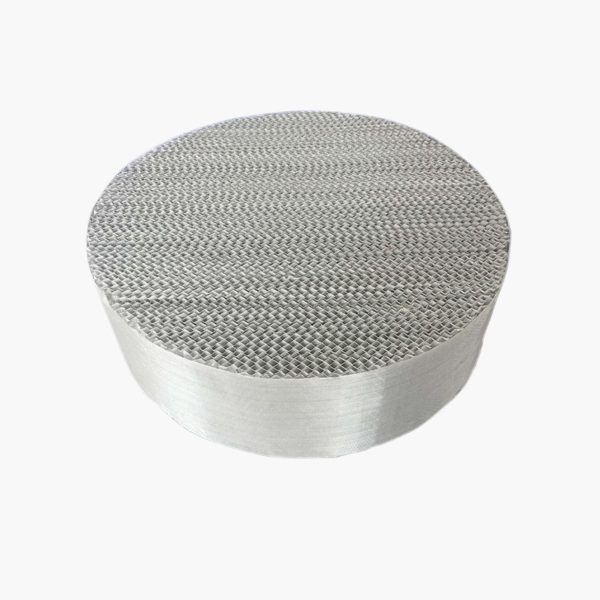 金屬絲網(wǎng)填料是目前世界各國應(yīng)用比較廣泛的高效填料,它是由若干平行直列的金屬波紋網(wǎng)片排列組成的圓盤狀填料。它具有比表面積大、孔隙率大、重量輕;氣相通路傾角小、有規(guī)則、壓降低;徑向擴(kuò)散良好、氣體接觸充分等特點(diǎn)。