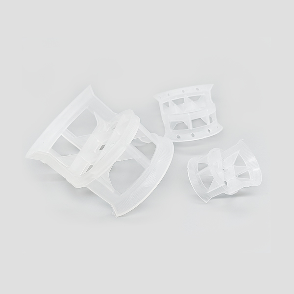 ?塑料共軛環(huán)由于其結(jié)構(gòu)獨特,在塔內(nèi)裝填時,填料間及其與塔壁間均為點接觸,空隙均勻,具有流體阻力小(壓降?。?,流量大的優(yōu)點,流體通過填料層時,汽液接觸良好,溝流和壁流趨勢小,從而達到傳質(zhì)性能優(yōu)良的效果。